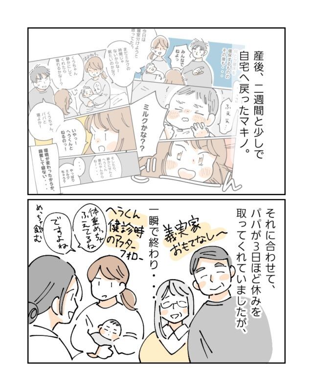 産後、二週間と少しで自宅へ戻ったマキノさん。