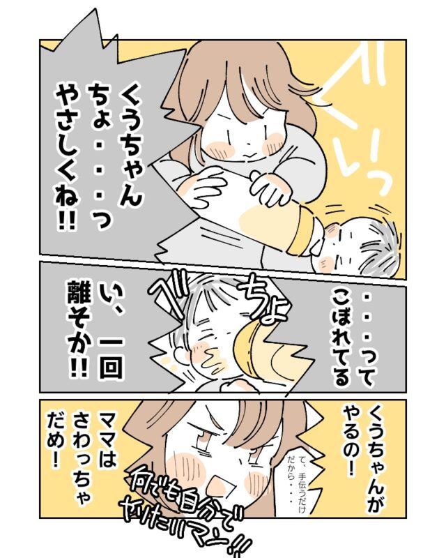 「くうちゃんがやるの!ママはさわっちゃだめ!」