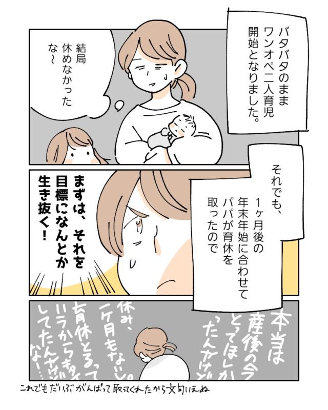 1ヶ月後にご主人が育休を取っていたので、ひとまずそこまでを目標になんとか生き抜こうと決意したのでした。