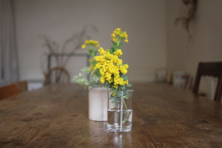 「目で季節を感じてもらえたら」との思いから、テーブルの上やカウンターなどには季節の花が飾られ、心がほっと癒やされるよう。取材日はちょうど「国際女性デー(ミモザの日)」が近いこともあり、ミモザや菜の花といった春を感じる黄色の花々が卓上を彩っていました。