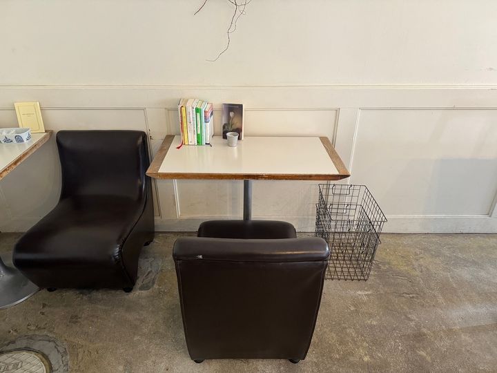 奥にある1名掛けのソファ席は2卓。卓上には店主が選書した小説やエッセイが並んでいます。手に取って何気なく開いたページの中に、今の自分に気づきを与えてくれる言葉が潜んでいるかもしれません。