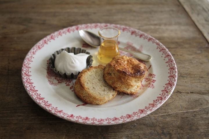 モーニング以外にも、自家製のスコーンやケーキなどの焼き菓子も人気。メニューは季節によって変わります。取材日にはプレーン、紅茶、さくら、抹茶ミルク、クランベリーチョコチップの「スコーン」470円~と、「国産レモンのパウンドケーキ」550円、「チーズテリーヌフランボワーズソース」600円がラインアップ。スコーンはザクザクとした食感が特徴で、小麦の風味がたっぷりと感じられる味わいが自慢。生クリームやハチミツを添えていただくと、味の変化が楽しめて◎。