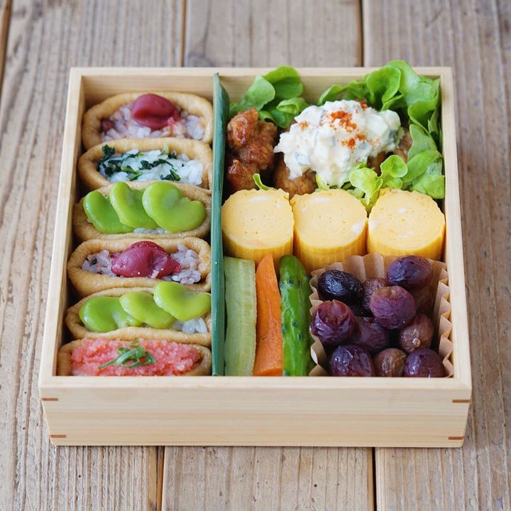 甘辛く煮た油揚げに酢飯を詰めたいなり寿司は、片手で食べやすくてお弁当にもぴったり。シンプルな見た目ですが、アレンジ次第で華やかなメニューに変身します。