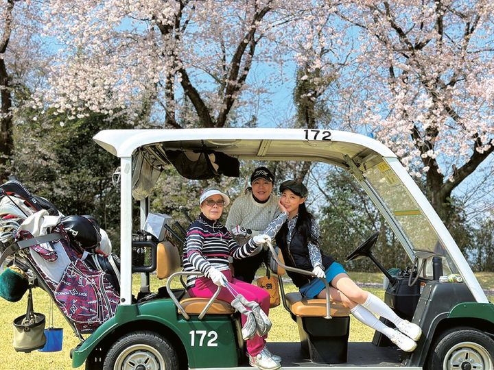 親子3世代でゴルフを楽しむスポーツ一家。娘・りたまるさん(右)はLPGAティーチングプロA級のプロゴルフコーチ汐里さんのゴルフアドバイザーでもある。