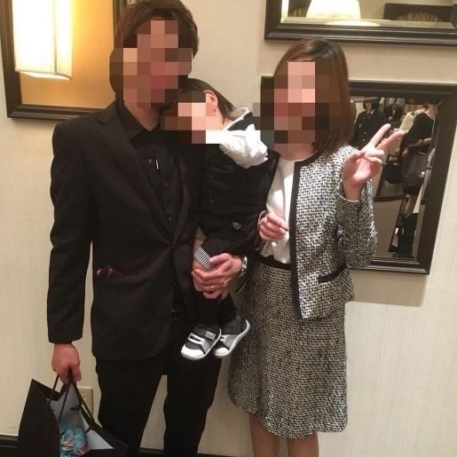 スーツはスーツブランド“AOKI”でシャツとネクタイは“スーツカンパニー”。パパはネクタイでオシャレに決めるのがポイント!