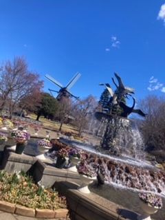 入口のすぐ近くにある噴水と風車です。青空にとても映えます♪