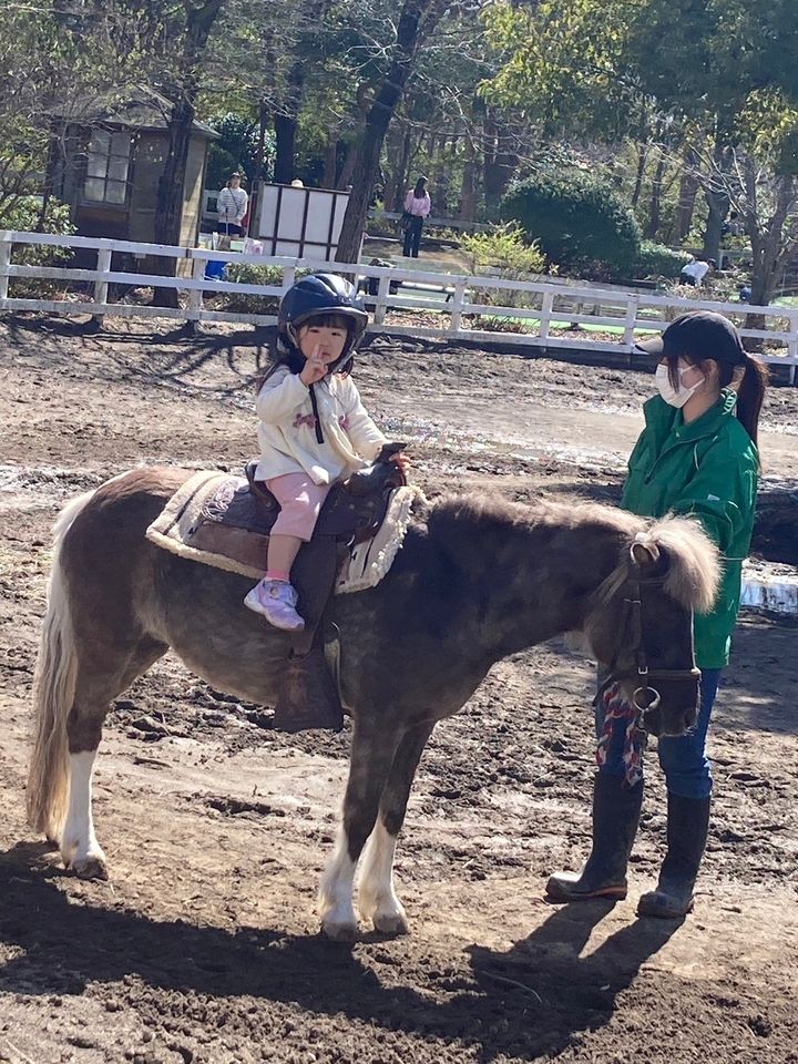 動物大好きな三女♪ポニーに乗れて喜んでいました。