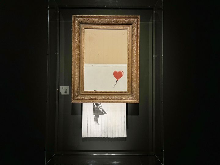額縁の下部に隠されていたシュレッダーへ落下し「愛はごみ箱の中に」と改名された作品、「Girl Without Balloon」が登場し、
