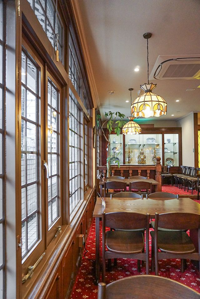 真っ赤な絨毯に、天井から吊るされたランプ。待合スペースには調度品がディスプレイされ、どことなくレトロ感の漂うおしゃれな空間美にも注目です。