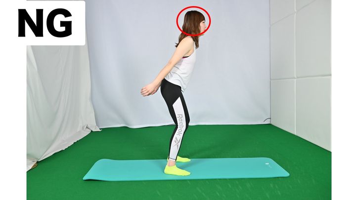 頭の重みで上半身が前に倒れると、背中が丸まってしまうので注意を。