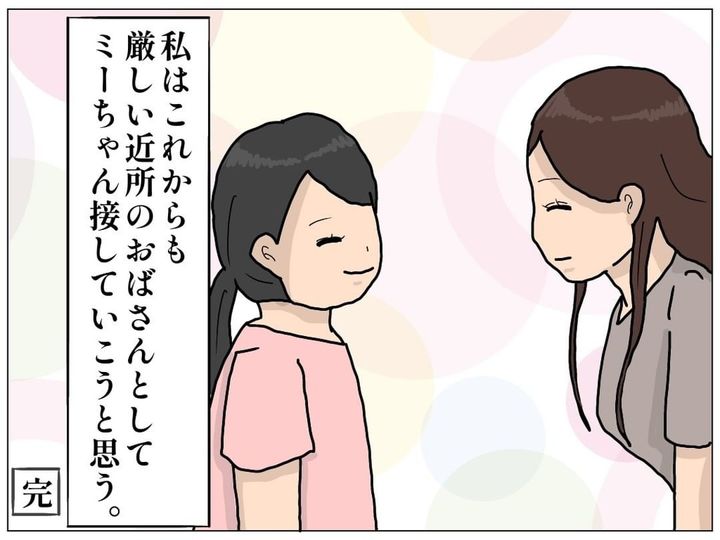 近所の子ども・ミーちゃんに「ママ」と呼ばれるほど懐かれた、もっちさんのフォロワーさん。初めは「遊び半分で呼んでいるのだろう」と思っていましたが、徐々に違和感を覚え始めます。「ママ」と呼ばれ始めたきっかけは、あいさつやお礼がなかったり、言動が乱暴だったりしたミーちゃんに注意をしたこと。ミーちゃんのママはミーちゃんへの関心が薄く、ほめたり叱ったりしないため、ミーちゃんは親から注目されない不安を抱えていたのです。徐々にミーちゃんの行動はエスカレートし、フォロワーさんの息子に対して「ママ(フォロワーさん)は私の方が好き」などと意地悪を言うように。
