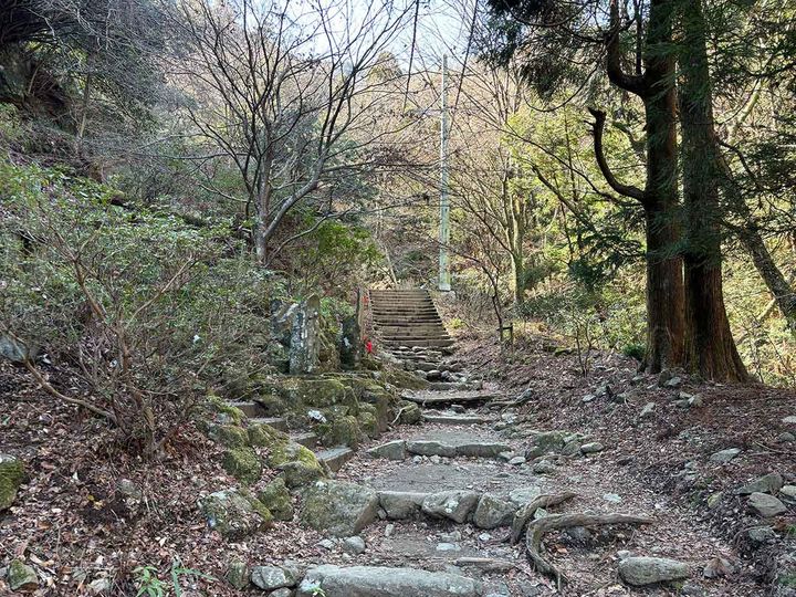 ここからケーブルカー、急な石段や足場のある男坂、いくらかやさしい女坂と分岐が三つに別れる。これらのジェンダー表現もそろそろ見直されるのだろうか、これは「文化」として残るのだろうかなどと考えつつ女坂を選ぶ。石段をのぼると幻のような、いや、むしろつい数時間前まで乗り継いだ駅や街のほうが幻だったかのような、清冽な空気に切り替わった。前日までは天気が安定していなかったようで山がしっとりとしていて、冷えた草の匂いがする。