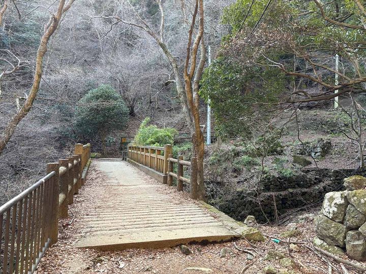 橋を渡って階段を上ってゆくと、「女坂の七不思議」という看板が目に入る。大山の女坂には七つの不思議な伝説のある湧き水や地蔵、菩提樹や岩などがあり、それらを探しながらトレッキングを楽しむことができるそうだ。ちょうど柳田國男『遠野物語』を読んでいたので、山の怪異に興味津々になりながら不揃いの石段をひたすらのぼる。空気はしんと冷えているのに、心拍数が上がり体は燃えるように熱い。歩き慣れているようすの、数人の軽装の女性たちが通り過ぎる。驚いたことに、その中にひとり白い着物を着て草履を引っかけた女性がいたのだ。もしかして、このコースにトレッキングシューズは気合い入れすぎだったか? ちょっとだけ恥ずかしくながら気を取り直して先へゆくと、石段はますます狭く高く、険しくなってゆく。