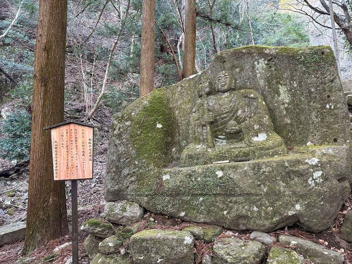 この平日だったのとスタートが比較的遅かったとはいえ、さっきの着物の女性含めた集団以外、大山にしては人がほとんどいない。もしかして私は遭難したのか? いやいや石段の上しか進んでいないぞ……と不安になりながら進むと、静かな山のせせらぎや風の音の向こうに念仏が混ざって聞こえてきた。次第に、DJの曲繋ぎのようにその念仏のボリュームが上がってゆく。焼香の匂いもほのかに流れてくる。冷気――というよりも霊気が頬に触れる感じがする。現代の郊外育ちの私にとっては、異界めいた雰囲気が流れ込んできた。