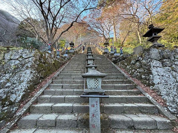 当日は軽く寝坊し、昼過ぎののだいたい13時前に伊勢原駅に到着した。伊勢原駅に発着している神奈川中央交通バスで20〜30分ほど揺られて「大山ケーブルカー駅」に降り、さらにこま参道を15分ほど歩くのだが、このこま参道もくせ者なのだ。なんと階段が362段もある。ここで既にギブアップしたくなる人も多いだろう。私はというと、日々のトレーニングのおかげか少し心拍数が上がる程度で気持ちよくのぼれていた。よしよし、けっこう脚強くなっているじゃないか、と得意げにケーブルカー駅周辺に到着する。
