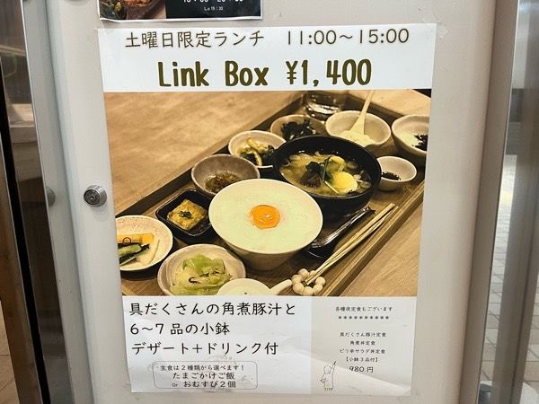 おにぎりランチの他、8時から11時のモーニングタイムは飲み物付きで500円から、16時から20時まではおつまみ晩ご飯を980円で提供しています。アルコールもあるので仕事帰りのちょい飲みが嬉しいですね。土曜日限定ランチのLink BOX(1400円)も人気です。カフェタイムにはミニパフェやコーヒーゼリーなどもあるのでいつでも通いたくなりますね。 三宮のど真ん中、駅の構内とは思えない隠れ家的な空間と手頃な値段で食べられるほっこりカフェに癒しを求めて訪れてみてはいかがですか?