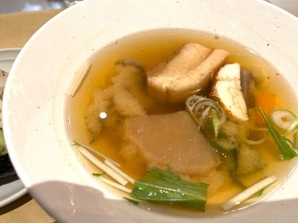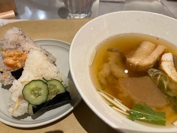 具だくさん豚汁はトロトロ角煮入りです。おにぎりとの相性も抜群でやさしくてほっとするお味でした。