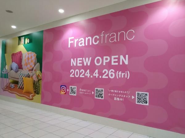 <茨木発>イオンモール茨木1階に、またまた新たな店舗がオープンします。以前GAPがあった場所にインテリアショップ「Franc franc(フランフラン)」がオープンします。