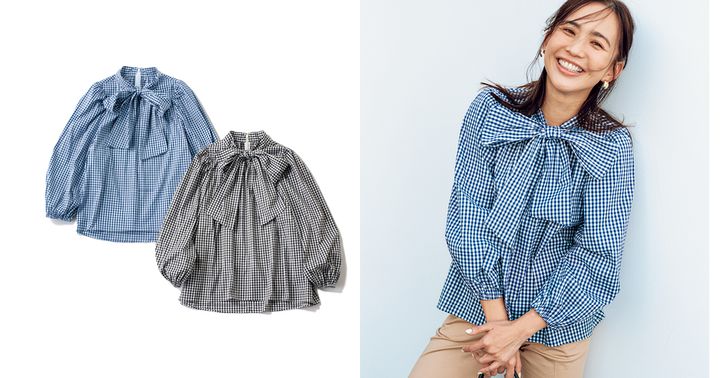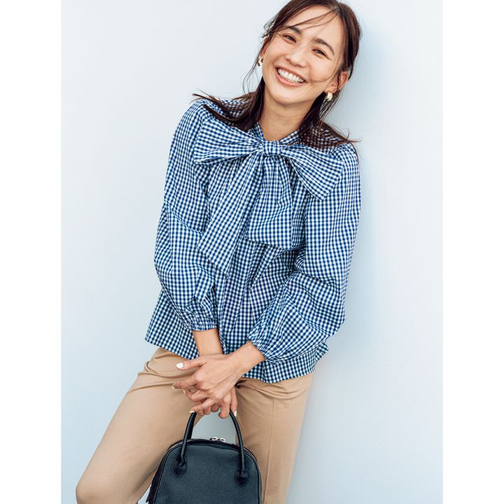 上品なギンガムチェックと ボウタイのコンビで理想の大人可愛さ