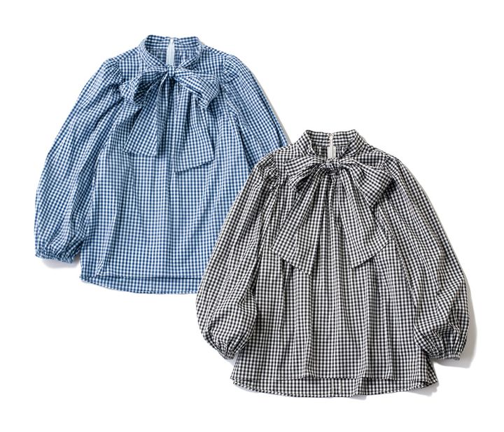 Maglie le cassetto ボウタイブラウス ネイビーギンガム、ブラックギンガム、ホワイト ¥24,200