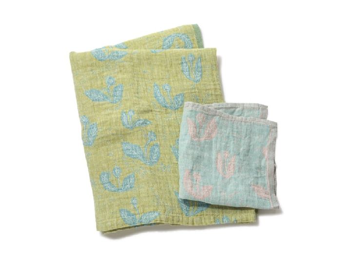柔和な絵柄は、フィンランドの街の道端に咲く花から着想。肌触りの良いウォッシュドリネン素材は吸水性に優れ、使い勝手も抜群。タオル 46cm角¥3,630 ブランケット 145×180cm¥27,500(ラプアン カンクリ 表参道 TEL:03・6803・8210)
