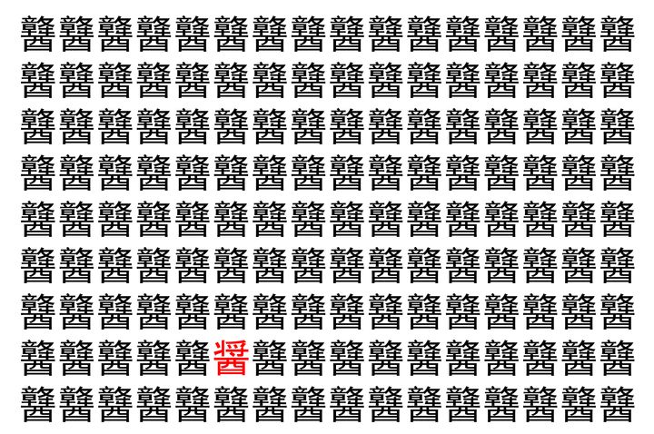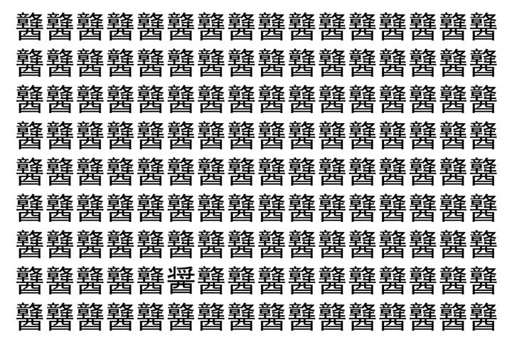 2. 【脳トレ】「䤗」の中に紛れて1つ違う文字がある!?あなたは何秒で探し出せるかな??【違う文字を探せ!】