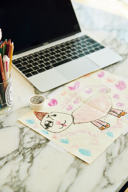 子どもの作品は、パソコンの下に貼ったり、リビングに飾ったり。