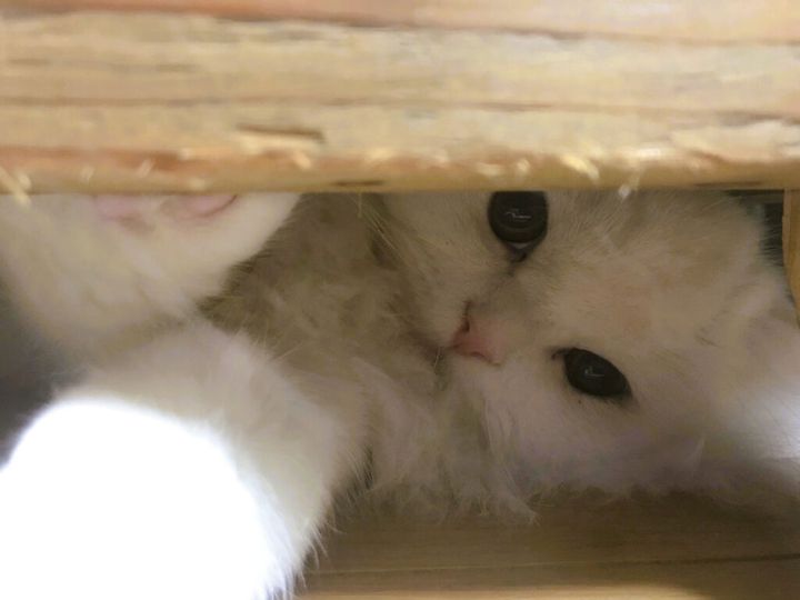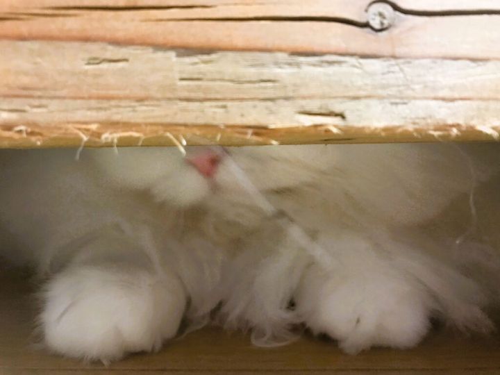 しーーーー。おきゃくさんが来てるから、かくれてる。