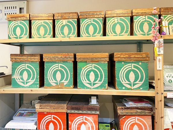 昔使っていたという茶箱も並んでいました。レトロなデザインがすてき!