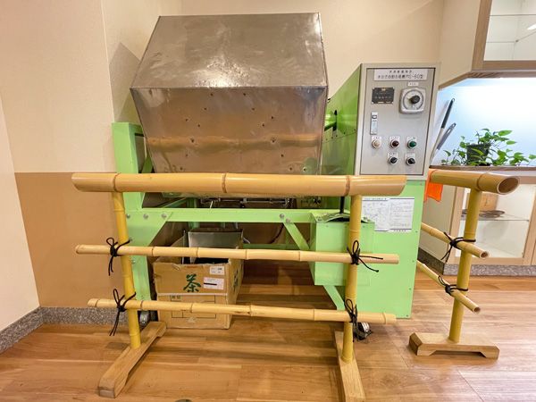 奥のほうに進むと、大きな機械がありました。これは「合組(ごうぐみ)機」といって、茶葉をブレンドする機械だそうです。