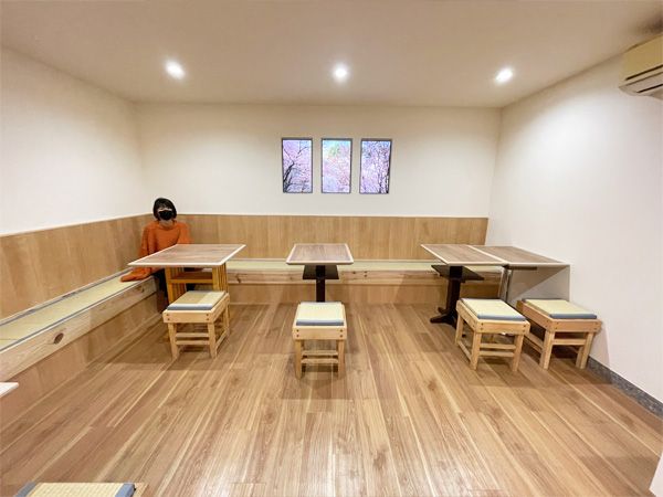 さらに進んで行くと、1番奥の空間がカフェスペースになっています。椅子には畳があしらわれていて、和モダンな雰囲気です。