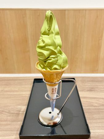 そして、抹茶ソフト!きれいな抹茶色です。こちらも濃厚な味を楽しめます。ほかにもバニラとミックス、ミニサイズのソフトもあり。