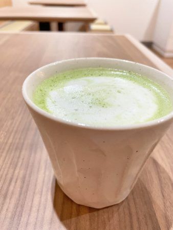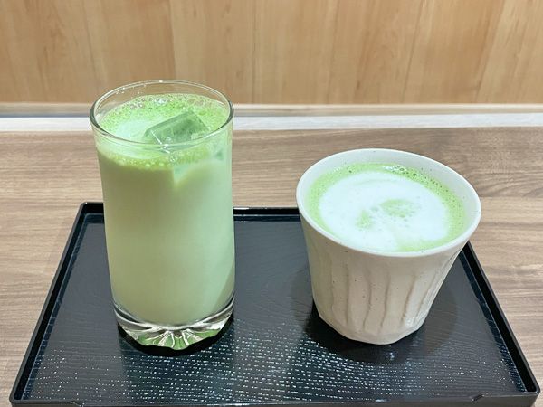 娘は「抹茶ミルク・アイス」(写真左)、私は「抹茶ラテ・ホット」をいただきました。さすがお茶屋さんのカフェだけあって、濃厚で上質な渋みを感じます。抹茶ミルクのほうが少し甘めで、ラテの方はより抹茶感を楽しめました。
