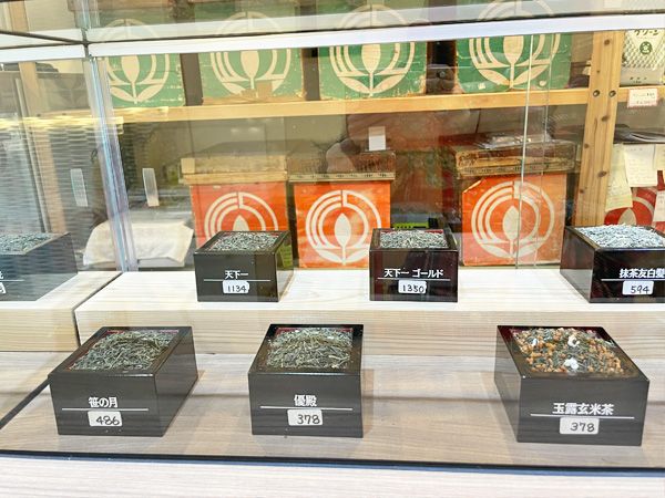 店内に入ると、ショーケースの中にたくさんの茶葉が!こうやって見ると茶葉の違いがよくわかりますね。