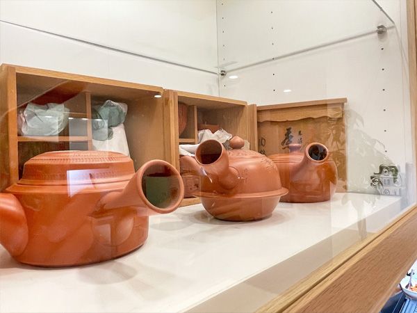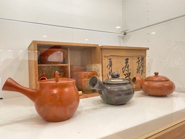さらに進んでいくと、貴重な急須が並んでます。常滑(とこなめ)焼の急須で40年以上前のものになるそうです。最近は急須がない家も多いようですが、このような急須で淹れるお茶のおいしさは格別でしょう。以前は旦過市場に倉庫がありましたが、2年前の火事でかなりたくさんのものが燃えてしまったそうです。