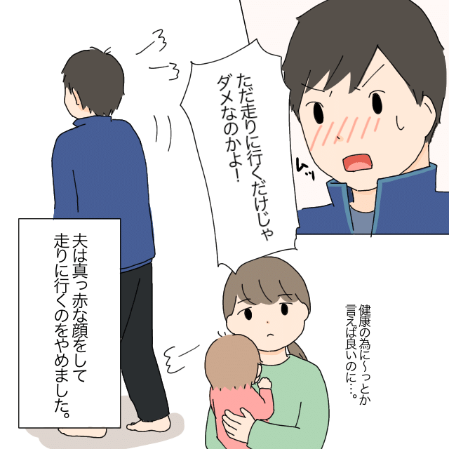 真っ赤な顔をして怒った夫は、結局走りに行くのをやめてしまいました。