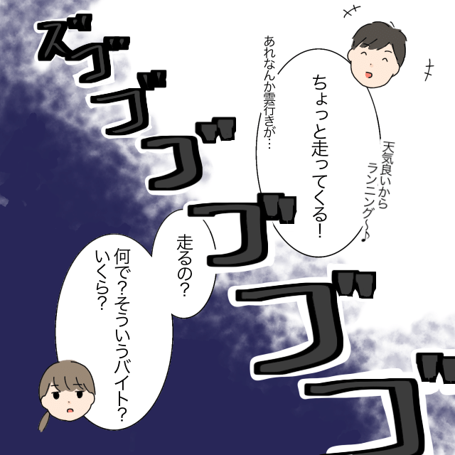 「天気良いからランニング~!ちょっと走ってくる!・・ってあれ?なんか雲行きが・・」