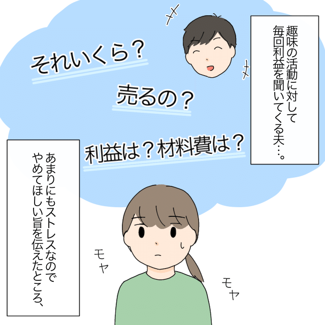 趣味の活動に対して毎回利益を聞いてくる夫・・。