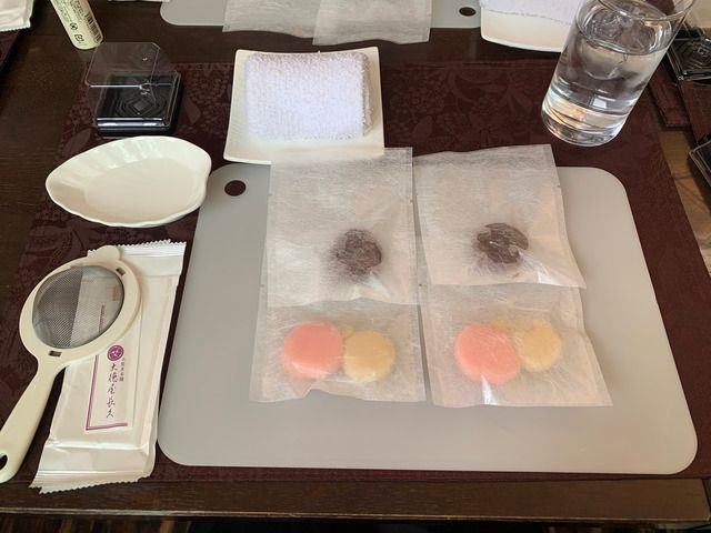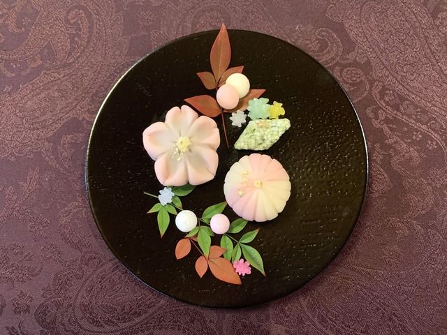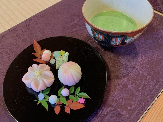 完成した和菓子は綺麗に盛り付けてお抹茶と一緒にいただきます。自分で作った和菓子の味は格別!