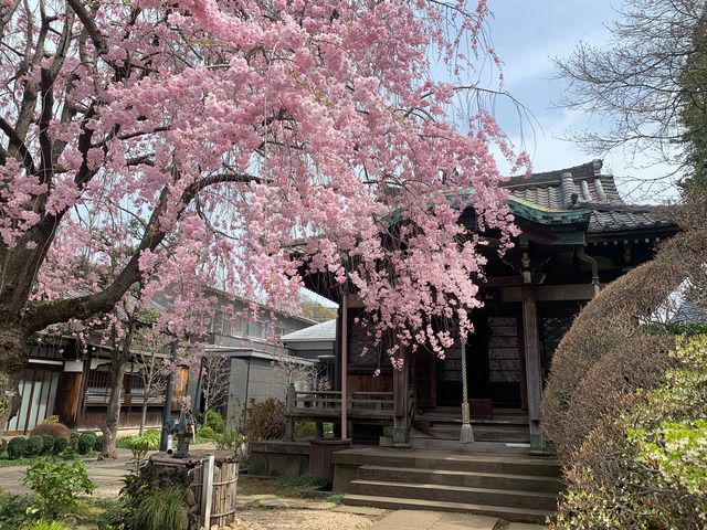谷中霊園を進んだ先にある天王寺には見事な枝垂桜が。