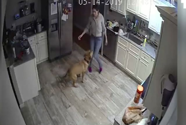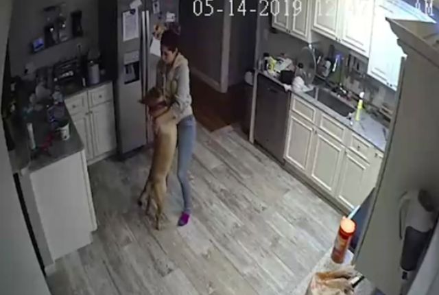 焦って防犯カメラの映像を確認してみると・・・、なんとそこにはガールフレンドと愛犬のとてもほっこりする姿が映っていたのです!!