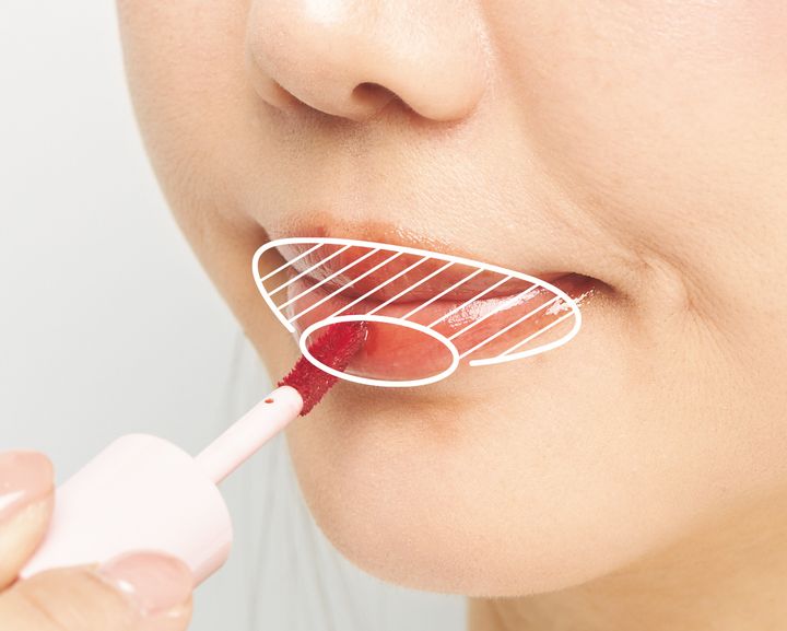 アイシャドウで仕込んだ陰影とティントのグラデで立体的なリップが完成!
