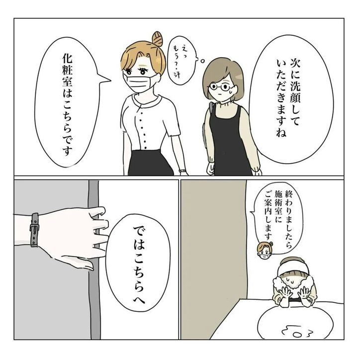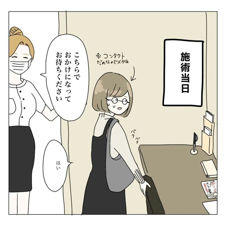 ついに施術当日を迎えました。美容整形とはいえ、切開をする手術です。同意書を書いたり、手術室を見たりすると事の重大さを感じます。家族に秘密にしていることを考えると、もいもいさんの緊張はさらに増したと思います。手術は無事に終えられるのでしょうか。