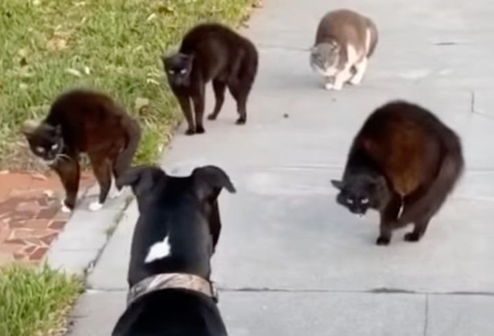 猫さんたちの迫力に、犬さんはタジタジ!!