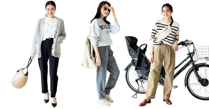 送迎・習い事に仕事…忙しいママがつい手にとってしまのが機動力の高いパンツ。今回は、チノパン、センタープレス、スウェットを使ったラクでサマになるコーデをご紹介します!