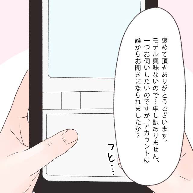 「褒めて頂きありがとうございます。モデルは興味ないので・・・申し訳ありません。一つお伺いしたいのですが、このアカウントは誰から聞きましたか?」