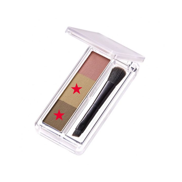 アイブロウパウダーは赤みのあるブラウンが入ったものだと失敗しない! ブラウン2色で簡単にベーシックなふんわり眉に。気分によって、その上にアクセントとして一番上の色を加えるとトレンド感のある眉にも。