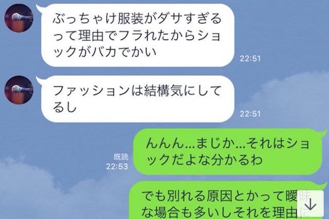 え?服装がダサいからフられるって酷くない!?ってか、きっともっと他に原因があるんだよ…もしかして新しい恋人ができたんじゃ…