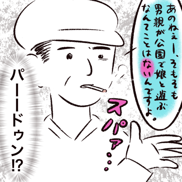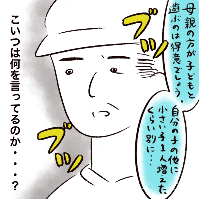 え・・それ言っちゃいます?堂々と??おーちゃんの父親、鼻から自分で子どもをみる気は全くなく、他のママさんにおーちゃんの面倒を丸投げするために公園に連れてきていたのですね・・・(汗)