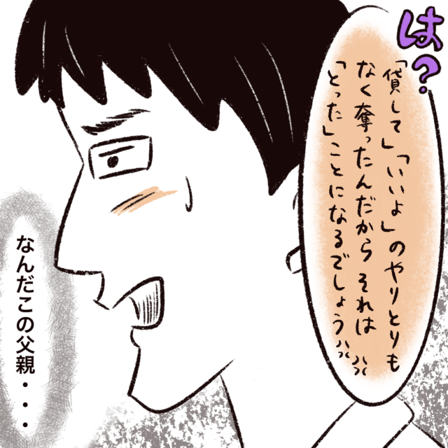 ひとかけらも理解できないおーちゃんパパの言い分に固まる我が夫やつれ。
